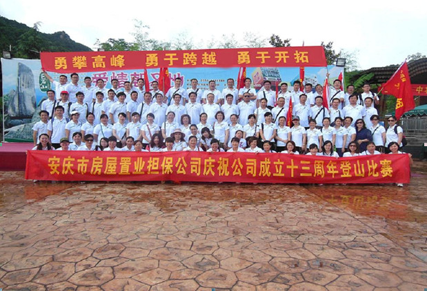 2013年6月23日,安慶市房屋置業(yè)擔(dān)保公司組織舉辦了以“勇攀高峰、勇于跨越、勇于開拓”為主題的巨石山登山比賽活動,慶祝公司成立十三周年。