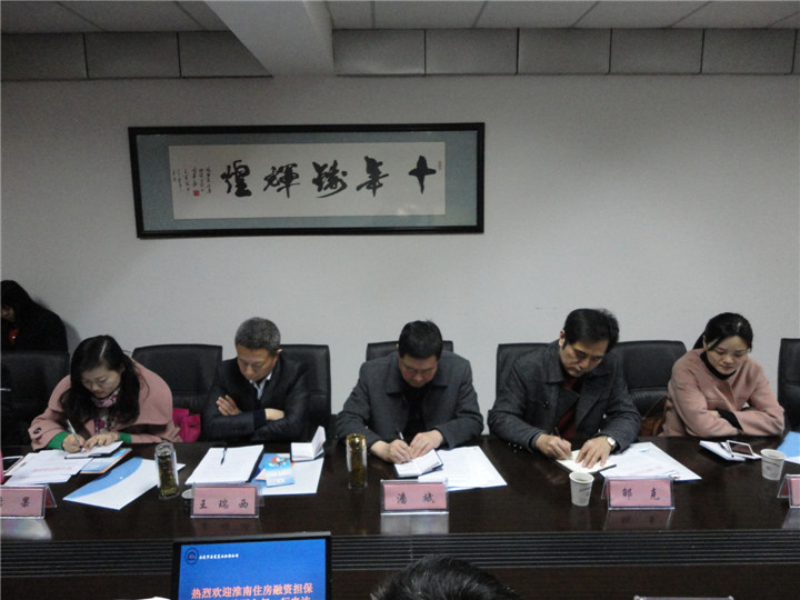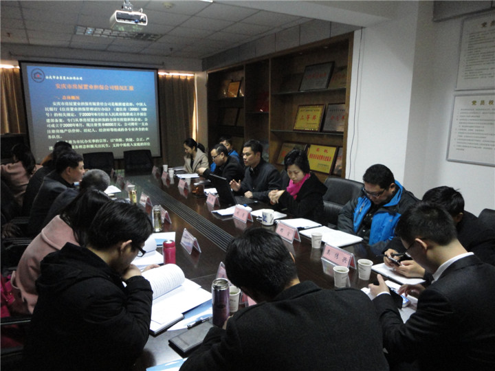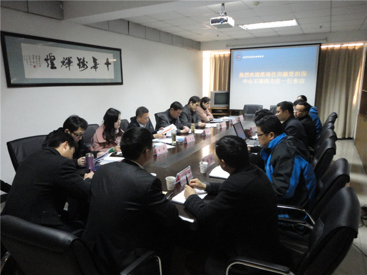 2015年3月19日,淮南市住房融資擔(dān)保中心主任王瑞西一行來(lái)到安慶市房屋置業(yè)擔(dān)保公司調(diào)研,雙方就縣域擔(dān)保分公司管理、市場(chǎng)性新業(yè)務(wù)拓展以及住房公積金貸款擔(dān)保行收費(fèi)新模式進(jìn)行了交流溝通。